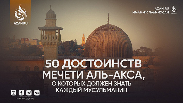 Аль-Масджид «Аль-Акса» – это одно из самых значимых мест Ислама на Земле, некоторые достоинства которой присущи только ей. Священный Коран и хадисы изобилуют ее достоинствами; ученые посвятили свою жизнь разъяснению ее достоинств в тысячах сборниках и трудах, особенно во времена осады, когда злые оккупанты и тираны сжимали ее пределы. Именно в такие времена необходимость освобождения «Аль-Аксы» становится первостепенной. Однако следует знать, что освобождение требует жертв, а жертва может быть принесена только через внутреннее осознание ценности вещи. Ниже приведены 50 таких достоинств, взятых из Корана и достоверной Сунны. Читайте о них и усваивайте, будьте креативными и распространяйте их, запечатлевая это в сердцах и умах: