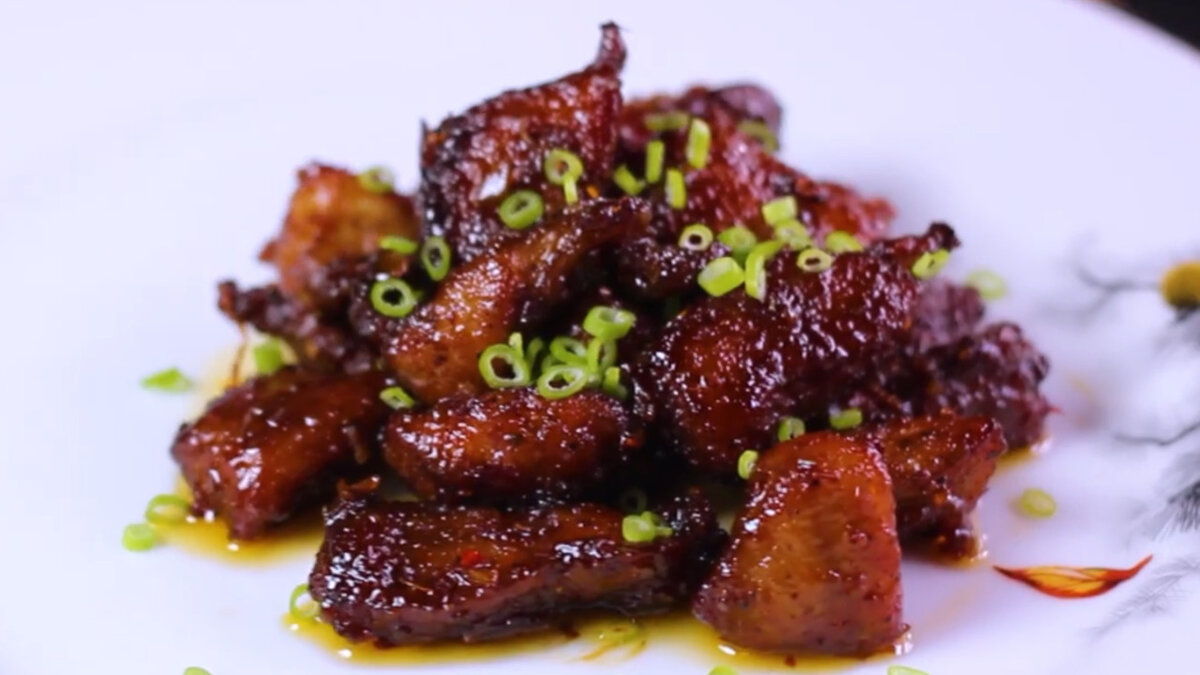 Жаркое из свинины в медовой глазури на ужин для вашей семьи. Приготовление: Вымыть, обсушить бумажным полотенцем и нарезать небольшими кубиками мясо свинины. Выложить кусочки мяса в глубокую миску добавить кукурузный крахмал, соевый соус, разрыхлитель теста, столовый уксус, соль и порошок чёрного перца. Смешайте все ингредиенты, накройте плёнкой и оставьте мариноваться на 2 часа в холодильнике. Разогреть растительное масло для фритюра в глубокой сковородке. Обжарить кусочки маринованной свинины на среднем огне до светло-золотисто цвета — это будет 80% прожарки. Затем выложить его на решётку или бумажное полотенце дайте мясу стечь и немного отдохнуть. Снова вернуть мясо во фритюр и обжаривать на сильном огне до темно-коричневого цвета -100% прожарки. Затем по готовности выложить мясо на тарелку. Разогреть на среднем огне 2 столовые ложки растительного масла в глубокой сковородке, добавить мелко резанный чеснок и имбирь. Обжаривать их до появления легкого аромата, не давая времени, зажар