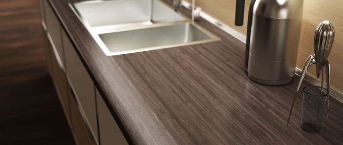 Красивая столешница способна облагородить любую кухню. Она изготавливается из разных материалов с применением современных технологий. Столешница должна соответствовать ряду обязательных требований: Рассмотрим наиболее популярные материалы, из которых в наше время делают столешницы для кухни: ➤ ЛДСП постформинг ➤ МДФ ➤ массив дерева; ➤ натуральный и искусственный камень ➤ крайне редко(сталь, керамическая плитка, стекло). Мы, в нашей работе используем: ➤ ЛДСП постформинг (влагостойкая) толщиной 26 мм и 38 мм ➤ натуральный и искусственный камень, отливается прямо у нас на производстве) Давайте подробнее разберем эти столешницы Столешницы из ЛДСП постформинг Наиболее распространённым вариантом столешницы на данный момент считается столешница из ламинированной ДСП, называемая постформинг. Постформинг – это технология облицовки слоистым пластиком листов ДСП. В процессе нанесения плиты ДСП обрабатывают специальным влагостойким составом, далее происходит нанесение тонкого слоистого пластика на