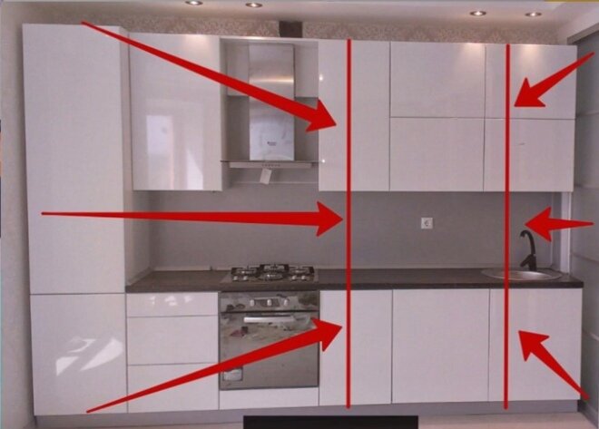 На этот вопрос, можно ответить следующей картинкой: Погонным метром кухни, называется один метр взятый снизу кухни и до самого верха. Т.е. в погонный метр входит: метр нижних шкафчиков, метр столешницы, метр стеновой панели и метр верхних шкафчиков. Для того, чтобы рассчитать, сколько погонных метров составляет именно ваша кухня — измерьте ее длину и переведите в метры. Если длина 3 400 мм, то в метрах это 3,4 м. Это и есть количество погонных метров вашей кухни. Если с прямой кухней всё понятно, то как рассчитать количество погонных метров у угловой кухни? Некоторые производители считают таким же образом. Они складывают длины сторон вашей кухни и выдают вам за количество погонных метров. Ну зачем считать два раза один и тот же размер? Ведь угловая кухня составляет перехлест. Объясняем формулу просчета угловой кухни: снимаем размеры длин сторон вашей кухни, предположим, одно крыло составляет — 3 метра, и второе крыло — 2 метра. Складываем эти длины и получаем 5 метров. Дальше вычитаем