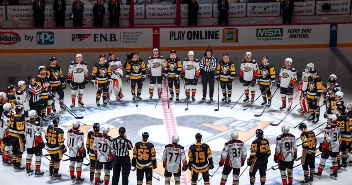 Игроки «Питтсбурга» и «Анахайма» почтили память Адама Джонсона перед началом матча НХЛ