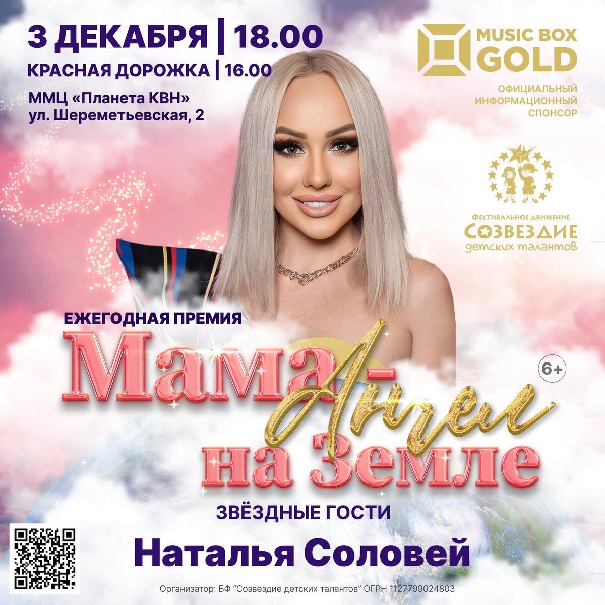 3 декабря в «Планета КВН» состоится праздничный концерт и церемония вручения премии лучшим мамам года «Мама - Ангел на Земле», посвященную Дню Матери в России. 🌟Приглашаем принять участие детей и подростков и выступить на одной сцене со звёздами российской эстрады. Ежегодно в ноябре проходит такой важный и большой государственный праздник – День матери в России. Он посвящён нашим мамам – ангелам на Земле! Каждая из них заслуживает признания и благодарности за то, что дарит детям поддержку, заботу и безграничную любовь. Премия создана с целью повышения статуса женщины – матери, которая совмещает свой материнский долг и достигает огромных успехов в образовании, культуре, спорте, бизнесе и принимает активное участие в популяризации семейных ценностей и традиций. На премию выдвигаются мамы, которые небезразличны к судьбам не только своих детей, занимаются благотворительностью, оказывают посильную помощь подопечным фонда. Эта премия призвана поощрить по-настоящему трудолюбивых и целеустрем