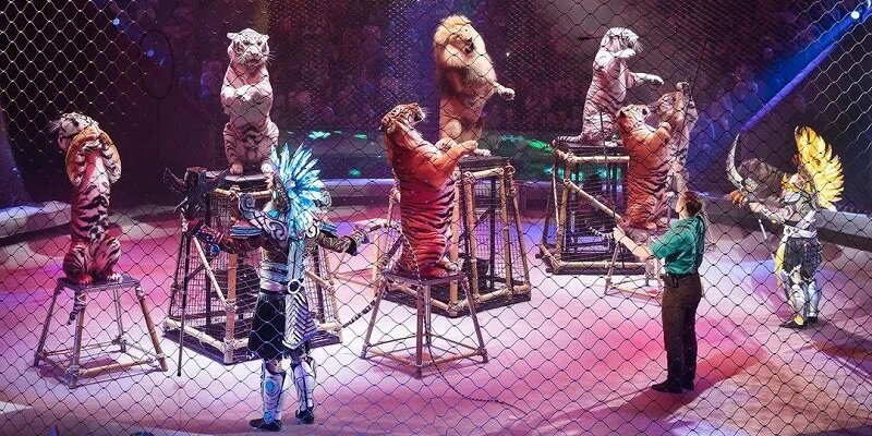 В красочной постановке задействовали более 50 артистов. Специально для каждого изготовили красочные костюмы, в которых они исполняют сложнейшие трюки. Вместе с людьми на манеже выступают тигры, львы, попугаи, лошади и очаровательный шимпанзе.