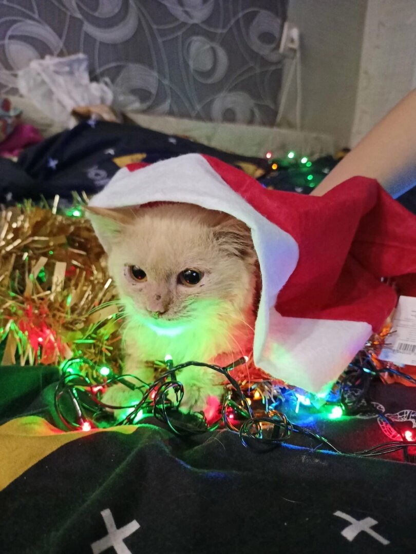 Одним осенним днем эту малышку принесли в клинику случайные прохожие. Они не смогли пройти мимо котенка, которого сбила машина. Они хотели ей помочь, но брать себе не планировали. По счастливой случайности, в этот момент в клинике оказалась одна из волонтеров. И еще один человек не смог пройти мимо беды этого маленького комочка. Оказалось, что кроме последствий ДТП, у питомицы еще и лишай. Что бы ее ждало? Приют. Но ей предстояло серьезное лечение. В приюте заниматься ею попросту некому, да и некогда. Волонтер забрала девочку с собой. По малышке было понятно, что она не дикая уличная кошка, это был совершенно домашний ребенок. Она знала кошачий этикет и с удовольствием общалась с людьми. А это значит, что раньше девочка жила дома. Подумали: "возможно сбежала или потерялась". Но никто в несчастном животном не признал своего. Кошечка прошла долгий путь выздоровления. Но вот, к концу декабря, она была готова отправиться в новый дом. Куратор начала подбирать для нее семью, ведь малышка оче