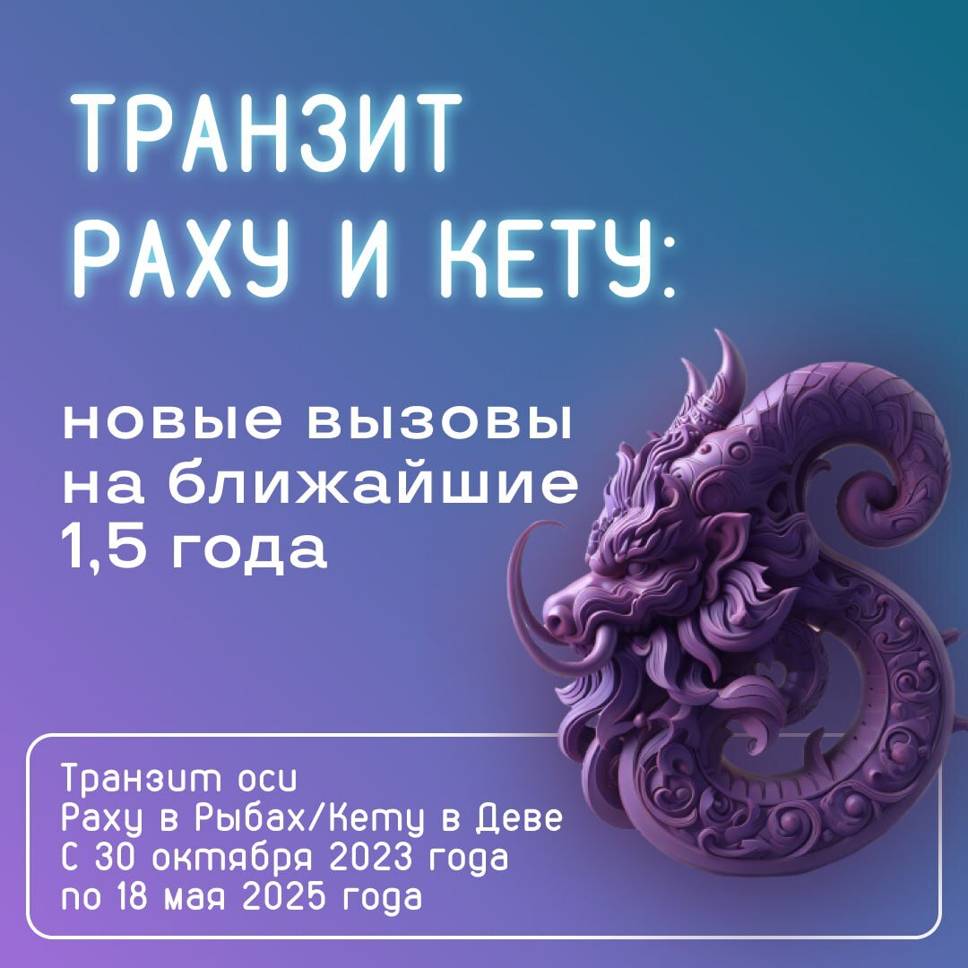 Раз в полтора года Раху и Кету меняют знаки транзита. 30 октября 2023 года, Раху и Кету перешли на ось Рыбы-Дева. Рыбы – это знак, который ассоциируется с водным элементом, интуицией, фантазией и духовностью. Во время транзита Раху через него качества Рыб могут быть активированы и усилены. Раху будет стимулировать познание глубоких внутренних истин, мистику и духовные поиски. Однако транзит Раху также может иметь свои вызовы, ведь эта теневая планета представляет собой своего рода затмение и может вызывать смущение, тревогу и нестабильность. Возможным проявлением такого влияния может быть потеря или разрушение связей, влияние негативных сил или появление нежелательных привычек. В это время Кету, находясь в Деве, стремится расширить жесткие рамки и призвать на помощь интуицию. Это соединение позволит вам упорядочить имеющиеся у вас знания, выявить пробелы и составить структурный план по их устранению. Вам может захотеться обучиться чему-то новому, и это будет полезно. Особенно благопри
