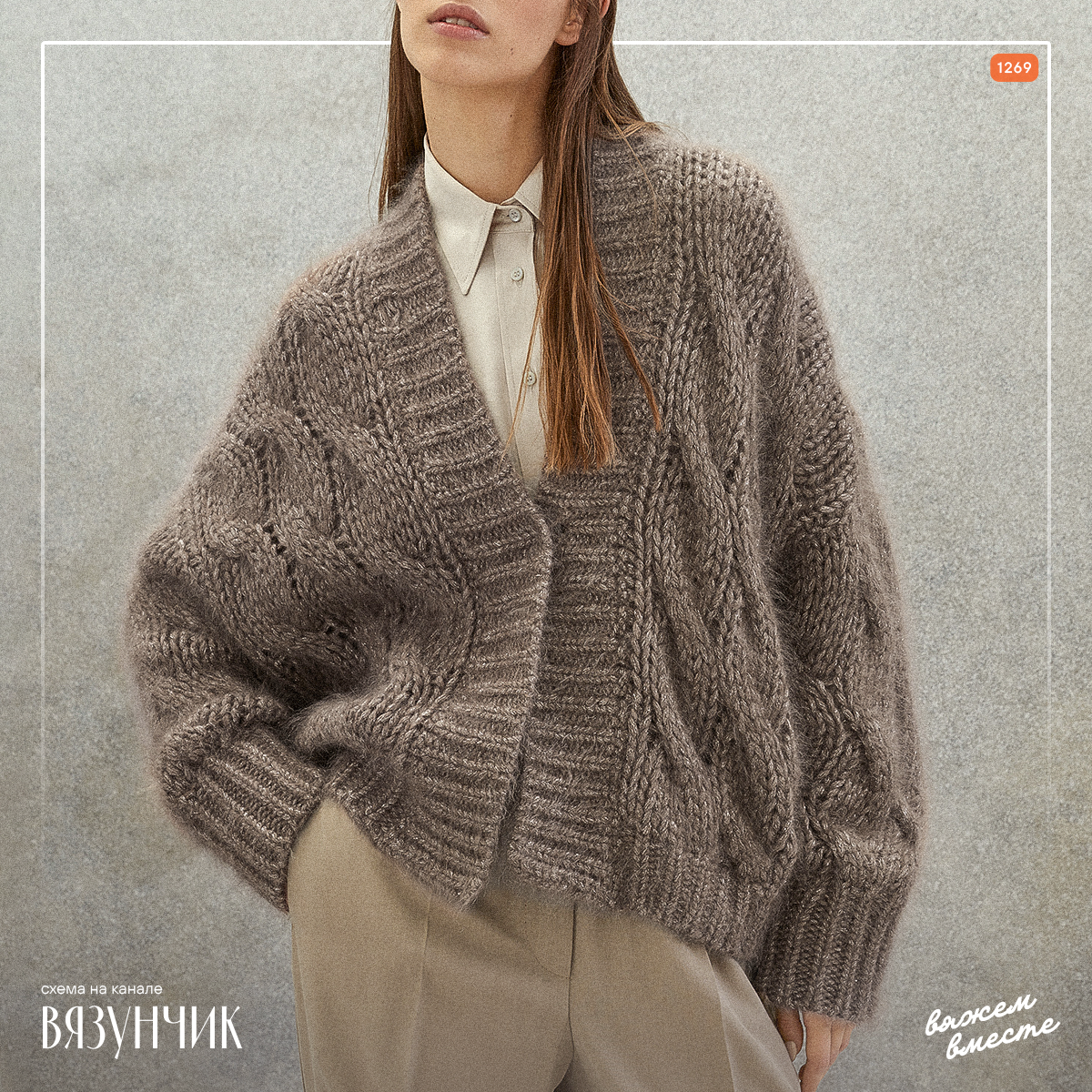 Здесь 100% кашемир и крупная вязка. Если решите связать джемпер самостоятельно, то потратите не так много времени, ведь модель также связана крупными спицами.