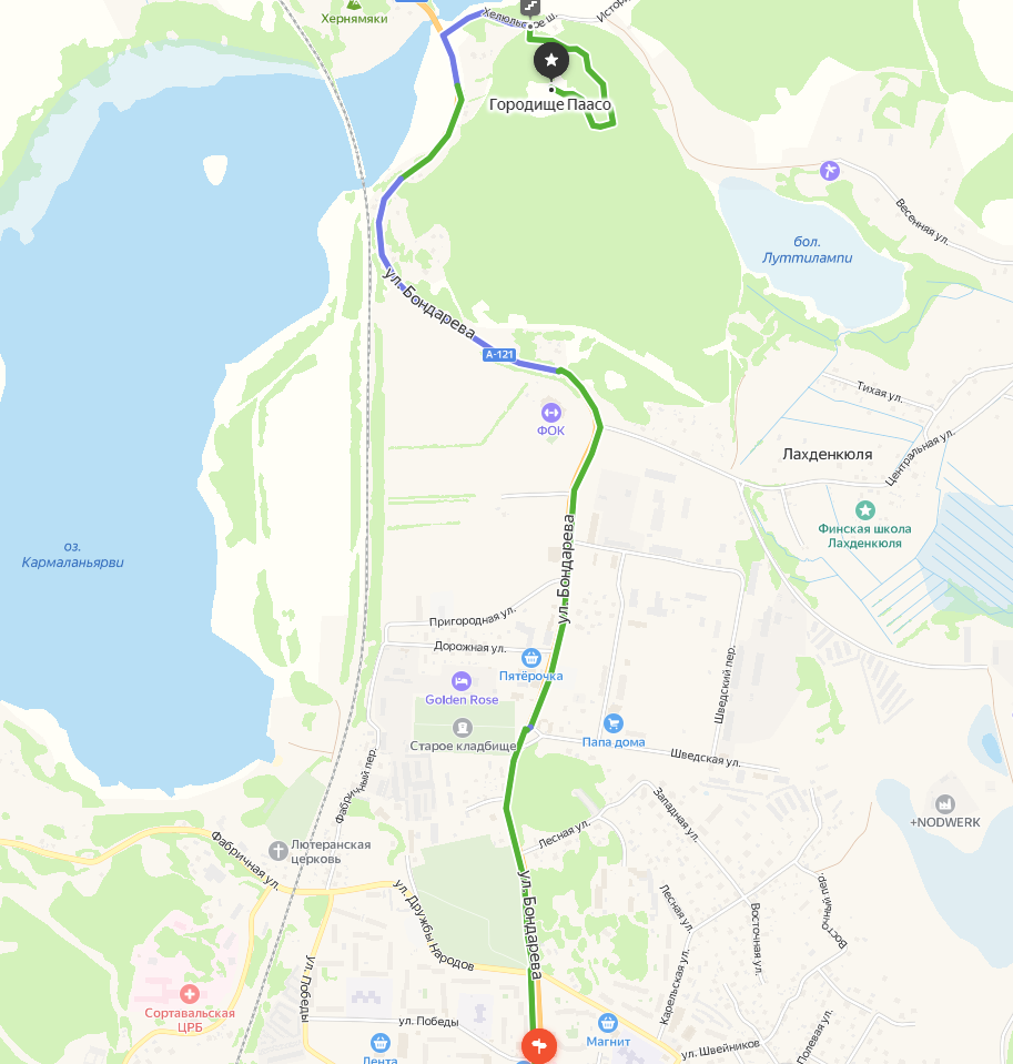 В прошлых всоих статьях я рассказал, как мы поднимались на Гору Священника, и на Гору Кухавуори. Сегодня расскажу о горе Паасонвуори Итак теплым летним вечером мы вышли из Сортавала и пешком направились в сторону села Хелюля. Наш путь, с учётом подъема, составил 4 км. В инете много предложений экскурсий на гору, но цена (!!!), да и самостоятельно намного интересней. Я вобще не люблю организованные экскурсии. Если кому-то трудно пройти пешком - то туда есть маршрут автобуса №1 - 10 минут и вы рядом с горой. Мы же идём, напомню, пешком. Ну вот почти пришли уже... Ещё совсем недавно, где то год назад примерно, тропа на гору была бесплатная. Но нашлись предприимчивые люди, огородили гору массивным забором, построили лестницы и теперь вход на гору стоит 300 руб. С другой стороны, напротив забора - красивое озеро! Платим деньги, идём в гору По пути попадаются информационные щиты Что то типа кормушки, возможно для белочек Чуть посидим... Тихо и хорошо, народу нет никого. Путь продолжается Сл