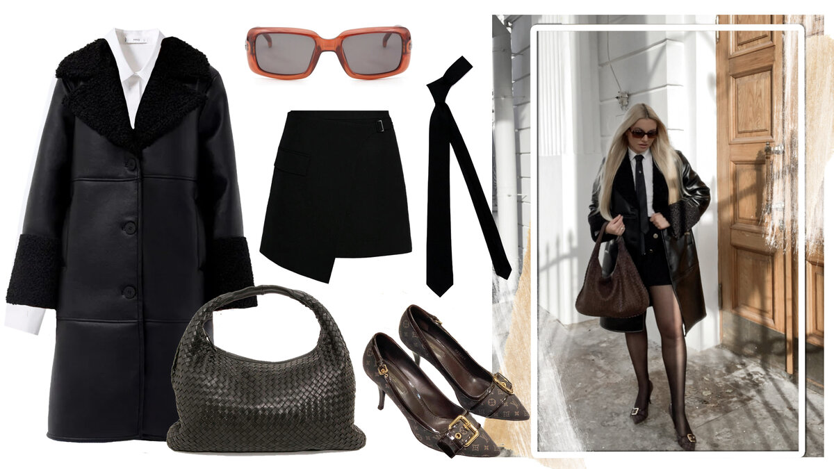 Несмотря на то, что образ кажется максимально простым, он очень трендовый. Давайте, я расскажу подробнее для тех, кто еще не видел моего выпуска про тренды сезона Осень-Зима 2023/24. Итак, классическая белая рубашка. Да, простая белая рубашка, но желательно, чтобы она была на размер больше, смотрелась не «в облипку». Далее… В моем образе (листайте ниже) трендовый аксессуар - это галстук. Еще актуальные, хотя и винтажные туфли LV. Сумка хобо (ее некоторое называют «бродягой»). Сумка имеет форму полумесяца и очень вместительная. Кстати, про эти сумки я рассказывала на телепередаче «Полезное утро» на 78 канале. Вы спросите: «Почему она в образе? Почему не маленькая аккуратная сумочка или клатч?» А вот именно в этом и есть нюанс. Эклектичность в луке делает его не слишком классическим, образ получается интересным и модным, плюс ко всему вышесказанному - это то, что сумка идеально попала в тон к классической расцветки у туфель бренда Louis Vuitton 👌🏻 Дубленка очень здорово подошл