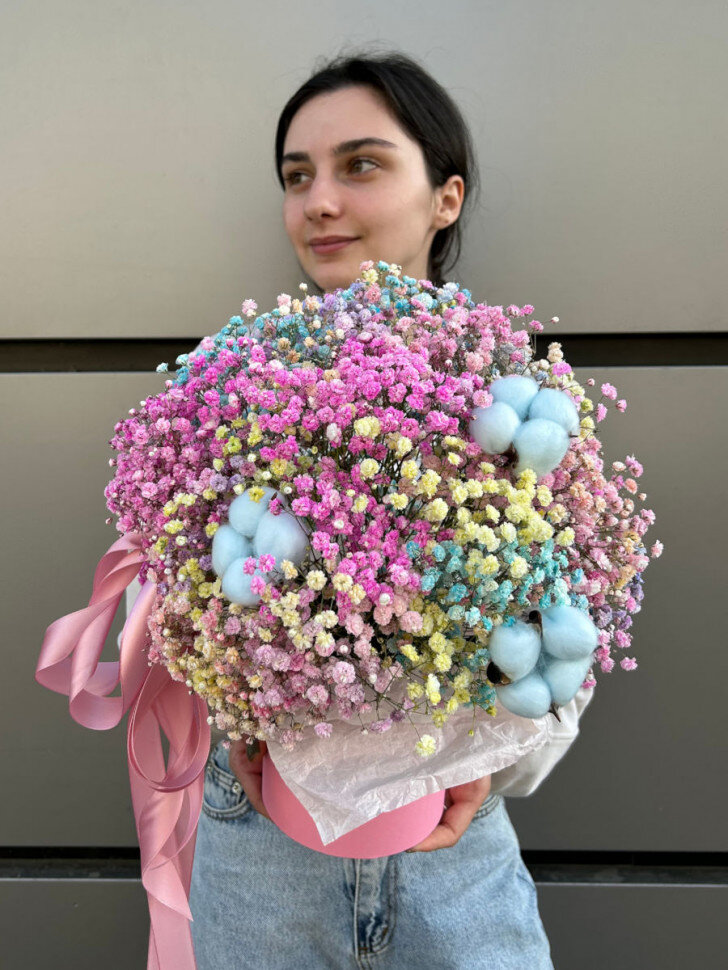 Кроме того, гипсофила доступна в других оттенках, таких как розовый и фиолетовый. Это дает возможность создавать более экзотические и оригинальные букеты. Комбинируя разные оттенки гипсофилы с другими цветами, можно создать уникальные композиции, которые привлекут внимание и будут ярким акцентом в любом интерьере.