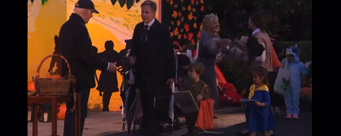 Во время празднования Дня всех святых Байден испугался ребенка в маске одного из персонажей фильма «Звездные войны. В социальной сети Х (Twitter) обсуждают видеоролик, который был снят в Белом доме во время традиционного празднования Хэллоуина. Внимание пользователей привлек факт того, что сын главы Государственного департамента Соединенных Штатов Энтони Блинкена был одет в костюм украинского президента Владимира Зеленского, то есть, в зеленый свитшот. Кроме того, дочь госсекретаря была одета в платье в цветах флага Украины. При этом в соцсети иронично напомнили, что на Хэллоуин принято наряжаться в чудовищ, героев фильмов ужасов и злодеев. В свою очередь, президент США Джо Байден во время праздника в Белом доме тоже сумел отличиться. Глава государства, по всей видимости, испугался ребенка в маске Дарта Вейдера, из-за чего даже выронил конфеты. Разумеется, такое поведение также стало поводом для шуток интернет-пользователей, которые стали гадать, кто кого больше напугал — мальчик в мас