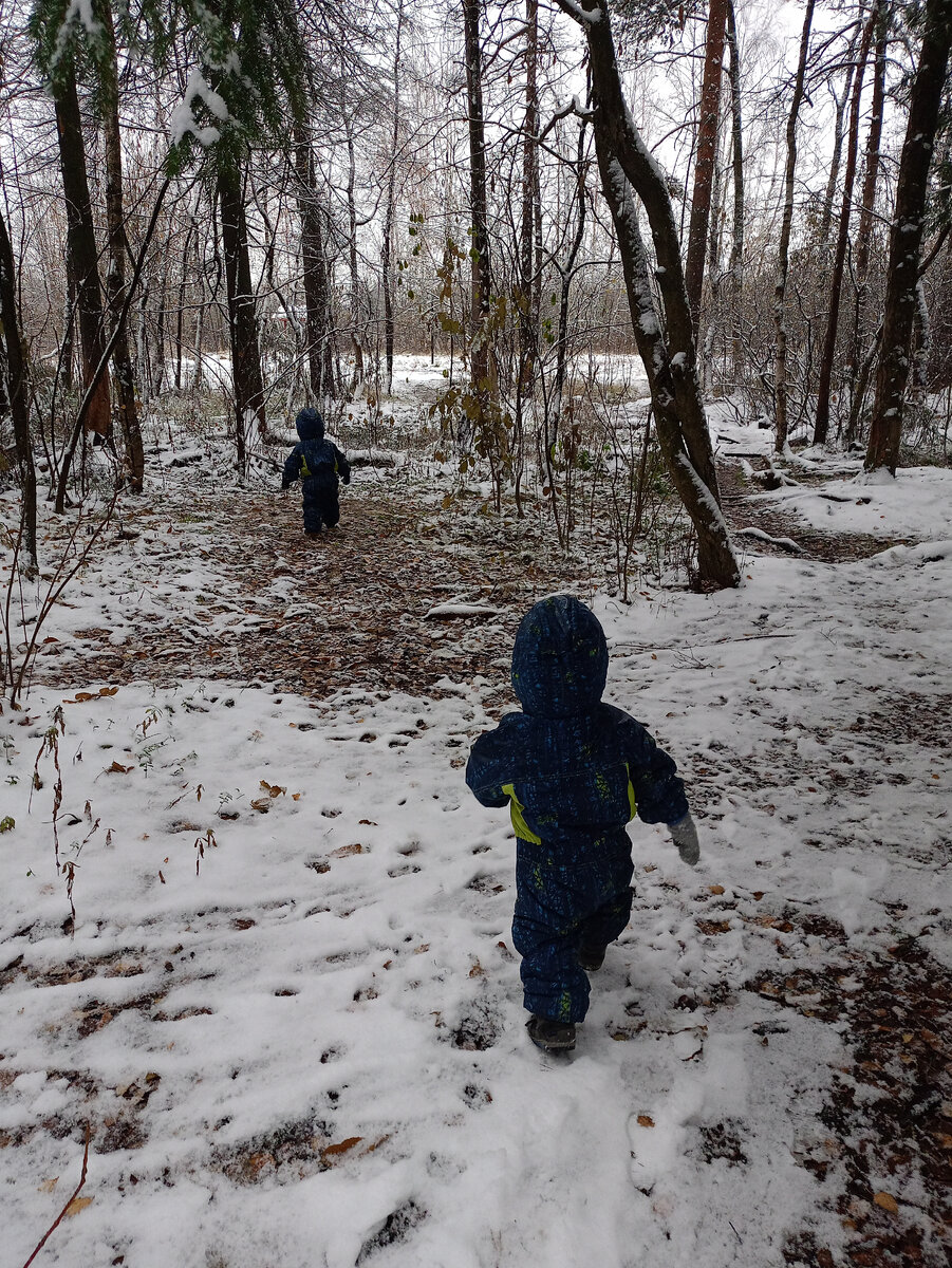 Обычно наши прогулки проходят на площадках, которые меня жутко раздражают. И площадки, и прогулки.. Десять минут "адеквата", а потом начинается дрессировка матери. Марсель двигается в сторону дороги, я бегу за ним, ему смешно и он бежит быстрее. Леон делает практически тоже самое, хотя сейчас некий прогресс наметился и положительная реакция на команду "разворачивайся". Но это тоже недолго действует, в итоге его все-равно манит дорога. Я уже даже не обращаю внимание на их беготню по лужам с разлетающимися брызгами до моего лица. Для меня пусть лучше в луже, чем на дороге. Благо батареи шпарят " будь здоров", обувь высушим, одежду выстираем. В окончании все получают словесного подпопника, мать отмерший пучок нервов и с криками мы катимся куда-нибудь подальше. Вчера до обеда у нас лил дождь, но почему-то в окно я решила выглянуть лишь когда упаковала детей на прогулку. Тут я вспомнила, что дом граничит с лесом, и там наверняка не так дождливо, благодаря вечнозеленым и нелысеющим насаж