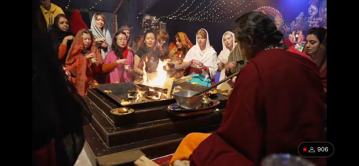 Второе чудо было сразу же по прилету. На празднике можно выбрать один из девяти дней когда ты можешь сидеть в самом начале и участвовать во всех ритуалах. Я сначала хотела выбрать первый день, но мы с подругой думали, думали и обе выбрали пятый. Пришли на праздник, а ритуалы в первый день проводил Гуруджи. И вдруг моей подруге что-то ударило в голову и она сказала, что нам срочно нужно сейчас идти на ритуал и начала упрашивать crowd control нас пропустить. И что вы думаете? Нас пропустили и я оказалась на ягье (огненный ритуал) прямо напротив Гуруджи. И это был в итоге единственый из всех дней когда ритуалы вел он.