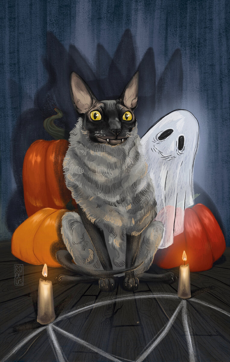 Самайновский кот. И детали поближе. Копирование и распространение работ без указания авторства запрещено! Прошу уважать мой труд❤️🔥 #самайн #хэллоуин #кот #прокриэйт #рисованиевпрокриэйте #диджиталарт #иллюстрация
