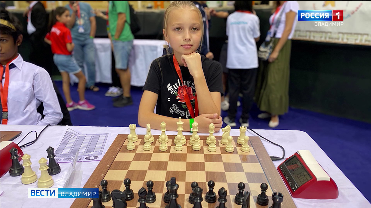 Наша землячка Диана Преображенская помогла российской шахматной сборной одержать победу в медальном зачете на детском первенстве мира. Оно проходило в египетском Шарм-эль-Шейхе, турнир собрал более пятисот шахматистов. Россию представляли 42 игрока. Одиннадцатилетняя Диана Преображенская взяла серебро в международных соревнованиях. Девочку называют "шахматной принцессой Дианой", еще в семь лет она стала вице-чемпионом Европы, обойдя в мастерстве даже совершеннолетних соперников. Добавлю, что победа в чемпионате это лучший результат юных российских спортсменов с 2019 года. ГТРК "Владимир"
