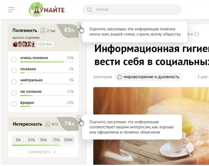 Если вы посмотрите на то, какая подсказка всплывает при наведении на иконку «вопросика» рядом с критерием оценки по «Интересности», то увидите такой текст: «Оцените, насколько эта информация соответствует вашим интересам, как хорошо она оформлена и понятно объяснена». Из него следует, что данный пункт голосования объединяет несколько близких, но всё же отличающихся друг от друга характеристик, а именно: • личный интерес пользователя к теме публикации • качество оформления, увлекательность подачи информации (картинки, форматирование текста, качество видеоряда и т.д.) • понятность раскрытия темы, насколько доступно она объяснена Рассмотрим несколько ситуаций. Допустим, что я интересуюсь устройством автомобиля. В этом случае большинство статей/видео по данной теме я буду высоко оценивать по интересности, так как они соответствуют моим текущим информационным потребностям. Но при этом каким-то материалам я поставлю оценку 100%, а другим, например, 50% или 75% - здесь уже сыграет роль то, ка