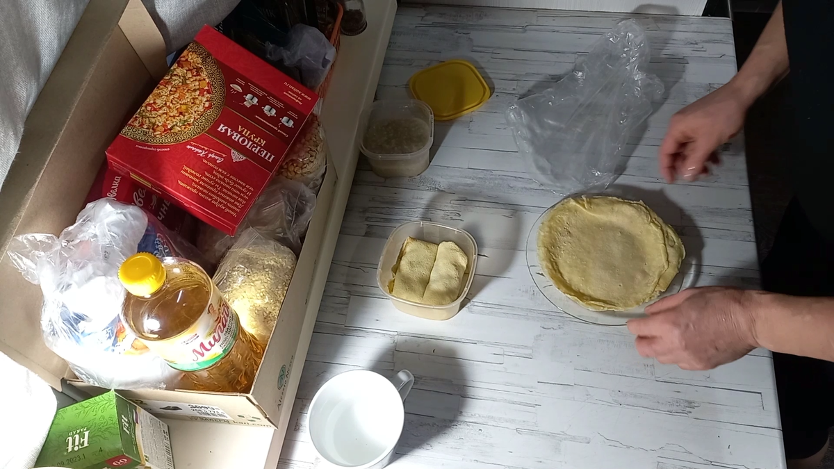 Всем здравствуйте. Меня зовут Ирина. Мы с сыном Денисом иногда проводим экспериментальные проекты на выживание и не только. Сразу скажу, что мы оба работаем и подрабатываем. Наши проекты – это наша инициатива и желание. Данный новый проект - одиночный, в котором участвовать буду только я. Денис уехал в Киров по работе почти на две недели((( Проект будет длиться 14 дней и я планирую потратить не больше 1500 рублей. День второй, еще самое начало проекта, разгон так сказать))) И мое меню на сегодняшний день. У меня осталась каша со вчерашнего дня и остались блины. Поэтому на завтрак у меня сегодня, естественно каша и блинчики фаршированные мясом, луком и капустой. Сначала на начинку в блины хотела использовать две фрикадельки, каждая из которых, кстати, весит 30 грамм, но решила, что это много и взяла только полторы. Также сделал печенюшки из маринада от огурцов. В маринад (3 ст. ложки) добавила масло растительное (2 ст. ложки), соду (на кончике чайной ложки), муку (2,5 ст. ложки), оставш