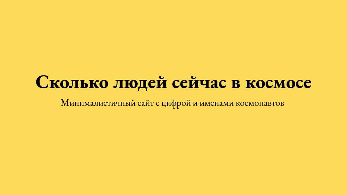 Ответ в виде цифры на фоне красивой космической картинки — на этом сайте. Просто, минималистично, только по делу. Если пролистать вниз, можно увидеть список людей, расшифровка цифры. Имена, фамилии, страна и количество дней, проведённых среди звёзд ✨ Поддержать канал: лайком, комментарием, подпиской или донатом