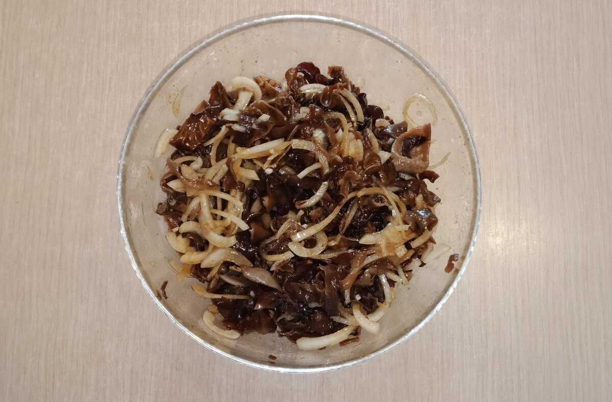 Муэр - обладает хрустящей структурой и нейтральным вкусов, благодаря чему хорошо сочетается со многими продуктам: мясом, птицей, овощами, крупами. Подходит для холодных закусок, тушения, супов, жарки. Купить грибы можно на Ozon, Wildberries. Если кого-то пугает в рецепте глютамат натрия, то ничего страшного в нем нет. Глютамат натрия такой же усилитель вкуса как соль и сахар, в небольших количествах вреда не представляет. В больших дозах соль и сахар тоже очень опасны. Глютамат натрия передаёт один из основных вкусов — умами, или так называемый «мясной вкус», «вкус белковой пищи». Способов подготовить древесные грибы много. Я их отвариваю, гриб есть гриб. Грибы Муэр – 3 пачки Лук репчатый – 2 шт. Чеснок – 2 зубчика Глютамат натрия в гранулах – 1 столовая ложка без горки (растворить в 20 мл. теплой воды) Масло растительно – 50 мл. Чили перец молотый – пол чайная ложки Паприка молотая – 1 чайная ложка Грибы отвариваем в подсоленной воде 15-20 минут, воды должно быть много, так как грибы