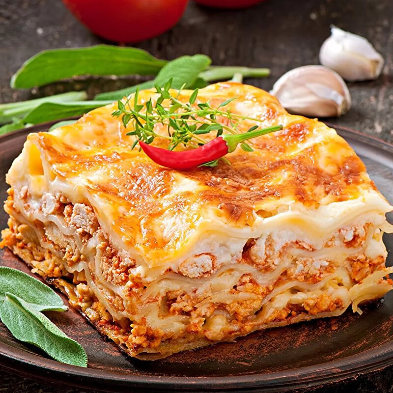 Ингредиенты: Оливковое масло 1 столовая ложка Репчатый лук 1 головка Говяжий фарш 750 г Стебель сельдерея 2 штуки Консервированные помидоры 400 г Томатная паста 2 столовые ложки Сахар 1 чайная ложка Сливочное масло 60 г Прованские травы 1 столовая ложка Пшеничная мука 3 столовые ложки Молоко 750 мл Готовые сухие листы лазаньи 375 г Сыр чеддер 125 г Время приготовления:30 минут. Инструкция приготовления 1). Разогрейте духовку до 180 градусов. Разогрейте половину оливкового масла в большой сковороде и пожарьте фарш. Переложите со сковороды. Добавьте оставшееся масло и обжарьте мелко нарезанный лук и сельдерей до мягкости. Верните мясо в сковороду и добавьте помидоры, пасту, травы и сахар, доведите до кипения, уменьшите огонь и тушите, накрыв крышкой, 20 минут. 2). Растопите сливочное масло в кастрюле на маленьком огне. Добавьте муку и обжарьте 1 минуту. Снимите с огня и постепенно влейте молоко. Верните на огонь, доведите до кипения и, постоянно помешивая, дайте загустеть. Уменьшите огон
