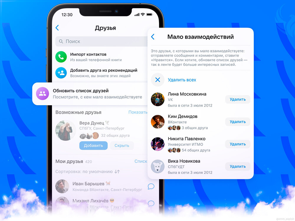 ΠΠΎΠ²Π°Ρ ΡΡΠ½ΠΊΡΠΈΡ ΠΏΠΎΠ·Π²ΠΎΠ»ΡΠ΅Ρ ΠΏΠΎΡΠΌΠΎΡΡΠ΅ΡΡ ΠΈ ΠΌΠ°ΡΡΠΎΠ²ΠΎ ΡΠ΄Π°Π»ΡΡΡ Π΄ΡΡΠ·Π΅ΠΉ Ρ ΠΊΠΎΡΠΎΡΡΠΌΠΈ Π²Ρ Π½Π΅ Π²Π·Π°ΠΈΠΌΠΎΠ΄Π΅ΠΉΡΡΠ²ΡΠ΅ΡΠ΅ ΠΈΠ»ΠΈ ΠΊΠΎΡΠΎΡΡΠ΅ Π΄Π°Π²Π½ΠΎ Π½Π΅Π°ΠΊΡΠΈΠ²Π½Ρ Π² ΠΠ.