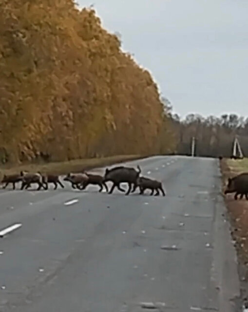 Стадо диких кабанов с кабанчиками на кукурузном поле рядом с трассой в приграничном Кореневском районе обнаружила ехавшая на машине семья. Куряне остановились, что снять необычную картину на видео. Дикие животные бродили по полю в поисках пропитания, а потом дружно переходили дорогу. В этот же момент на заднем плане ещё одна группа животных пересекала трассу в обратном направлении – к кукурузному полю. В общей сложности можно насчитать 60–70 голов. – И маленькие, и большие: целый выводок, – комментирует видео автор Сергей Прудников. Любопытно, что под постом с кабанчиками в нашей группе «ВКонтакте» в комментариях появилось ещё одно похожее видео, также сделанное в Кореневском районе. Николай ЛАПИН, фото с видео Сергея ПРУДНИКОВА Постоянный адрес статьи на сайте «Друг для друга» ~ https://dddkursk.ru/number/1515/new/018689/. Архив статей газеты ~ № 44 (1515) 31 октября ~ 2023 год.