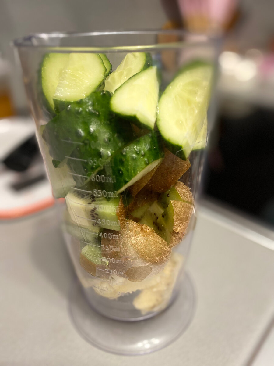 Ни для кого не секрет, что залог красивой кожи - здоровое пищеварение! И главным ингредиентом этого рецепта, который способствует самоочищению организма, является киви 🥝 Полезные свойства киви прежде всего обусловлены высоким содержанием антиоксидантов, которые поддерживают здоровье сердечно-сосудистой системы, замедляют процессы хронического воспаления в организме, защищают клетки от повреждений, продлевают молодость и активность организма. Также, это основной источник витамина С, а поскольку одна порция в 100 граммов содержит суточную норму этого витамина для взрослого человека, рецепт смузи станет хорошим подспорьем в его получении. Итак, Берём: -Банан - 1 шт. -Киви - 2 шт. -Огурец - 1 шт. -Вода питьевая - 50 мл. Готовим: Важно! Кожуру с киви снимать не нужно, поскольку она содержит те самые свойства, необходимые для организма. Употребляйте такой смузи 2-3 раза в неделю и вы заметите, как ваше самочувствие улучшится, цвет лица приобретет здоровый вид, вы будете полны энергии и си