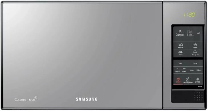 Всем привет. И я представляю вашему вниманию микроволновую печь Samsung ME83XR/BWT. Содержание Внешний вид Микроволновая печь Samsung ME83XR/BWT идеально впишется в ваш кухонный интерьер! Твердое керамическое покрытие более стойкое по сравнению с покрытием обычных микроволновых печей. Благодаря такому покрытию интерьер рабочей камеры будет долго оставаться как новый и радовать глаз. Пользоваться этой микроволновой печью очень просто благодаря удобному электронному управлению с сенсорными переключателями и дисплеем, на котором отображается вся необходимая информация. Подсветка камеры и звуковой сигнал позволяют полностью контролировать любой процесс работы. Особенности Наличие 6 уровней мощности позволит вам без труда подобрать наиболее оптимальный вариант. Высокая мощность микроволн обеспечивает быстрое приготовление. Нет времени пролистывать кулинарные книги в поисках нужного рецепта? Слишком мало времени, чтобы импровизировать? Предоставьте автоматическому меню микроволновой печи Sam