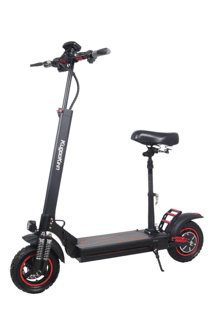 Представленная модель электросамоката с сиденьем предназначена для быстрой езды по пересеченной местности. Электросамокат мощностью 600 Вт легко проедет по бездорожью и гравию. Максимальная скорость составляет 50 км/ч. Аккумулятор емкостью 11 000 мАч обеспечивает запас хода в 35 км. Вес электросамоката составляет 25.6 кг. Максимальная нагрузка 120 кг. Данная модель оснащена широкой прорезиненной декой, что обеспечивает дополнительное удобство во время езды. По бокам деки расположена боковая подсветка. Так же электросамокат оснащен передней фарой и ярким задним фонарем на крыле. Тормоза дисковые, что обеспечивает безопасное и быстрое торможение на любой скорости. Самокат удобно хранить и транспортировать, благодаря складной конструкциии небольшим габаритам. Цена: 40 900 Оценка: 5,0⭐