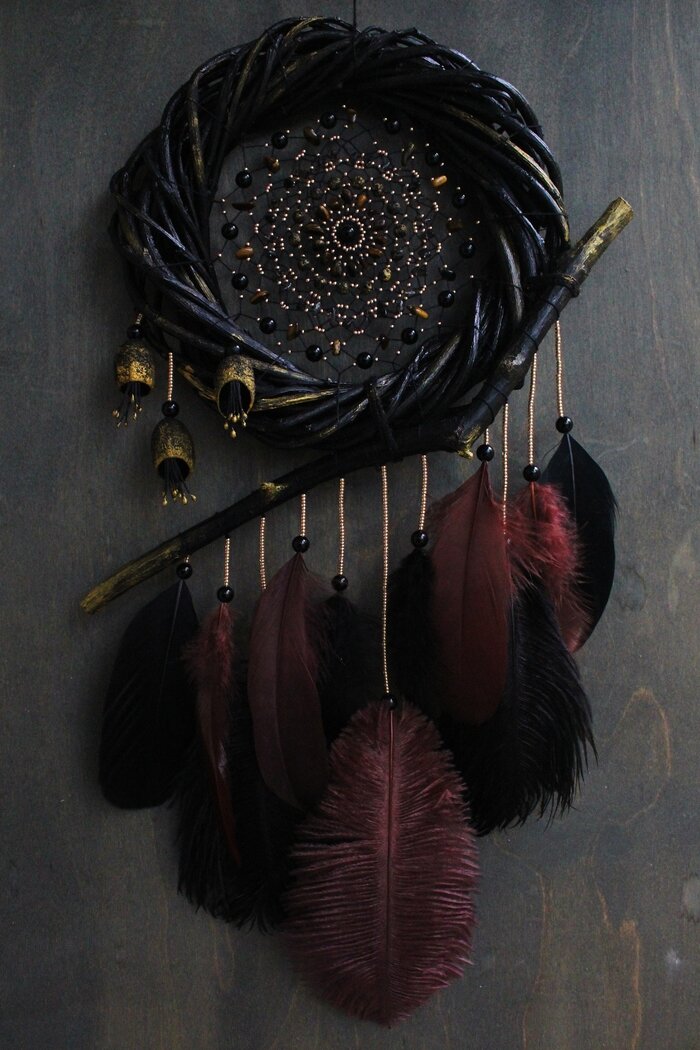 Самайн, пожалуй, является моим самым близким праздником Колеса Года. Самайн — это самая тёмная ночь года. Ночь, когда границы между Мирами практически перестают существовать. Ночь, когда природа умирает, чтобы с наступлением весны переродиться. Это ли не цикличность жизни? Самайн — это время, чтобы вспомнить наших предков, поблагодарить их за все. Оставьте окна в Вашем доме открытыми, поставьте горящие свечи в качестве путеводных огней и обязательно приготовьте любимые угощения для тех близких, кого с Вами нет. Тогда родные обязательно навестят Вас. Ловец снов Самайн с обсидианом, чёрным агатом, тигровым глазом, вулканическим камнем и дымчатым кварцем. Основа — ива, тонированная акрилом. Коряга — яблоневая ветвь. Оперение — гусь, петух и страус. Ловец так же украшен шелковыми коконами, тонированными вручную. Всех причастных с Самайном, волшебные, будьте благословенны! Лера Филькина — Сны Дриады. Пост автора DriAdaDc. Узнать, что думают пикабушники.