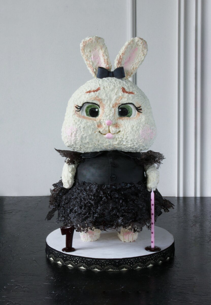 Сегодня ночью Хэллоуин! Праздник, конечно, так себе, но всё равно хочется быть немножко в теме. Есть фильм, который очень ассоциируется у меня с этим праздником. Конечно же - это Уэнсдей? Кстати, кто смотрел? Ждёте второй сезон? Я очень! На тему Уэнсдей я делала 2 торта и оба максимально необычных. Сейчас покажу вам первый, а второй выложу в видео-формате ближе к ночи. Итак, встречайте! Зайка-Уэнсдей🤭 Точнее, кролик. Предыстория такая. За несколько месяцев до дня рождения дочери моей дорогой подруги Кати мы с ней решили, что нужно сделать Есении торт в виде кролика, так как она очень любит этих милых зверюшек и дарить ей планируют белого кролика с рыжими пятнышками. А перед самым праздником Есения сказала, что хочет торт с Уэнсдей. Тут, конечно, мы с Катей немножко впали в ступор. Как объединить столь разные тематики🤷. Но спасла нас сама именинница. Она просто предложила одеть на кролика платье Уэнсдей. Так и родилась эта милашка 🥰. Торт, кстати, антигравитационный. Девочка стоит н