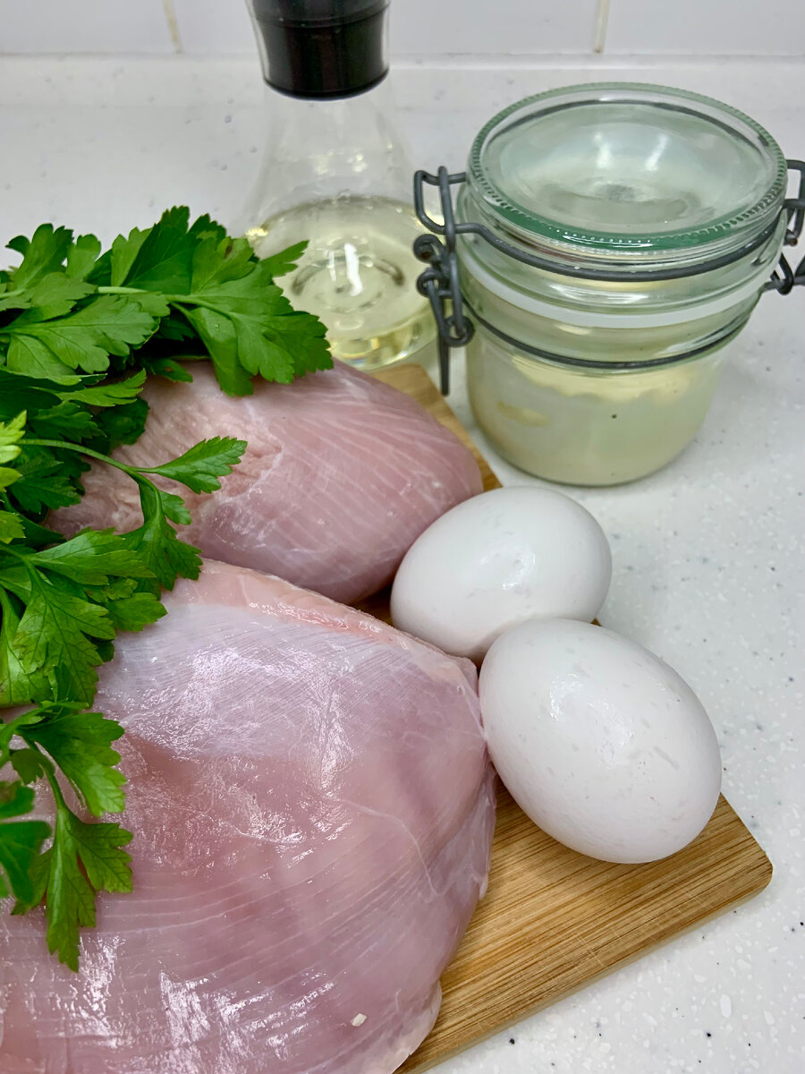 Давно хотела рассказать вам рецепт рубленных котлет из индейки. Он сложный, точнее не сложный, а муторный - очень долго резать индейку в крошку для них, но поверьте, оно того стоит! Да и вы уже столько всего знаете и умеете))) "Почему бы просто не провернуть идейку в крупный фарш?", - спросите вы. "Потому что вкус получится другой." - отвечу я. Рецепт попал ко мне от подруги Вики. В беременность я постоянно хотела есть и у меня был сильный токсикоз, так что я вообще не готовила. Я даже думать о еде не могла, но прекрасно ела все что готовят другие. И вот приехала я к Вике голодная, а она мне эти котлеты. Ну и все, они теперь с нами. В оригинальном рецепте используется сметана, я ее заменила домашним майонезом (рецепт найдете в салате с крилем) . Индейку использую грудку, раньше готовила из бедра, резать мелко его - пытка еще та! Поехали! Вам понадобится: Приготовление: 1. Тщательно моем и сушим индейку. Далее режем оперек волокон на очень тонкие стейки, их в свою очередь на тонкие п