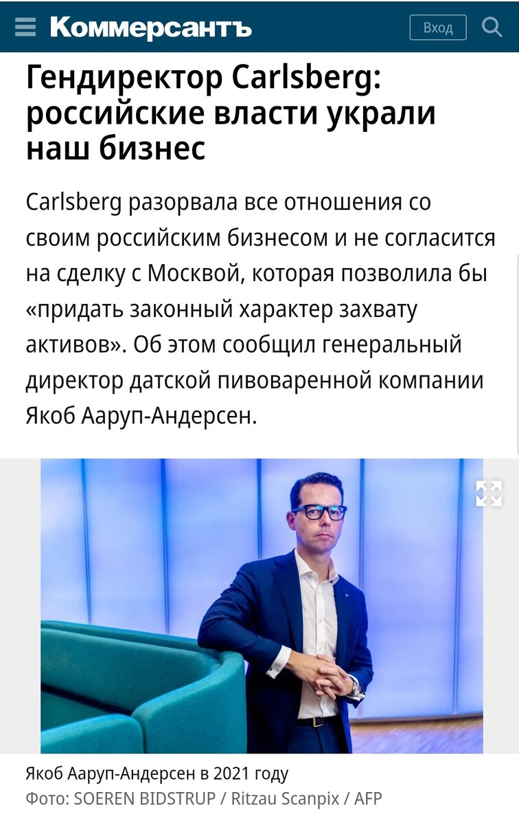 Глава Carlsberg Джейкоб Аруп-Андерсен: власти РФ украли наш бизнес!