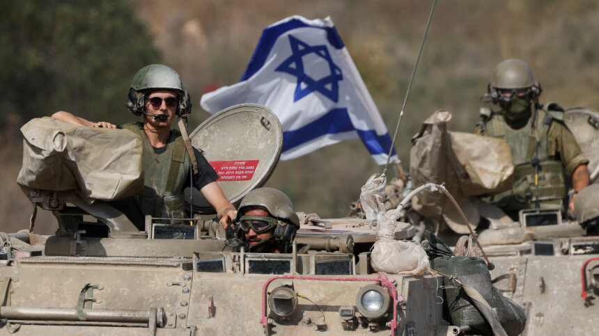 На пунктах сбора армии стоят десятки танков. Фото: Reuters / VIOLETA SANTOS MOURA; 5-tv.ru Третий этап войны Израиля с ХАМАС, о котором говорил сегодня премьер-министр страны Биньямин Нетаньяху, набирает обороты. Сотни единиц бронетехники продвинулись на несколько километров за границу в районы на окраинах анклава. На пунктах сбора ЦАХАЛ стоят десятки танков. Все они готовы к атаке противника. О ходе боевых действий рассказал корреспондент «Известий» Станислав Григорьев. Где-то упала бомба, но журналисты на горе слышат лишь слабое эхо — ветер дует в другую сторону и звуки из Газы уносит в море. «Вот тот самый момент, когда по сектору Газа нанесен очередной авиаудар. Мы находимся в Сдероте — городе, который интересен своим взаимным расположением с проблемным анклавом. Они находятся угол к углу. Вот там — пригород Газы Бейт Ханун, вот здесь — сама Газа, а авиация работает где-то между этими двумя географическими точками», — отметил корреспондент. Удары следуют один за другим — гул авиаци