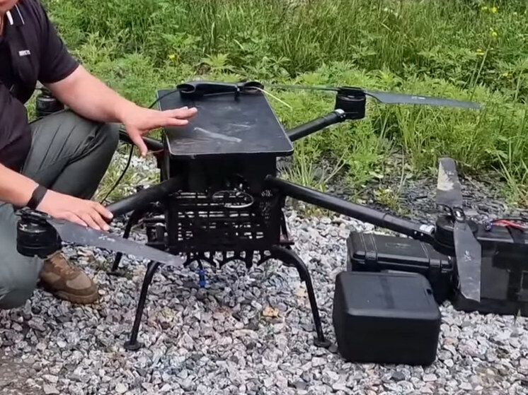 На одном из запорожских отрезков, где по сей день с начала лета происходят жаркие сражения, военнослужащие добровольческого батальона "Крым" перехватили дрон тяжелого класса "Баба Яга". О результативной боевой работе по защите воздушного пространства рассказал непосредственно боец формирования добровольцев в своей беседе с корреспондентом ТАСС. Дрон-сбрасыватель "Баба Яга" является грозным оружием, способным делать вылеты даже ночью. Сам по себе он является боевой модификацией гражданского коптера Reactive Drone Agric RDE616, переделанного украинской армией из сельскохозяйственного аппарата в "гексакоптер-бомбардировщик". Скриншот из видео с Бабой Ягой. Источник фото: mk.ru Благодаря шести двигателям=пропеллерам тяжелый беспилотник способен поднять до 50 килограмм. А для успешного противодействия РЭБ-установкам в него вмонтированы помехоустойчивые модули радиосвязи. Ещё одним из достоинств украинской техники можно назвать интегрированный "бортописец", способный во внутренней памяти хра