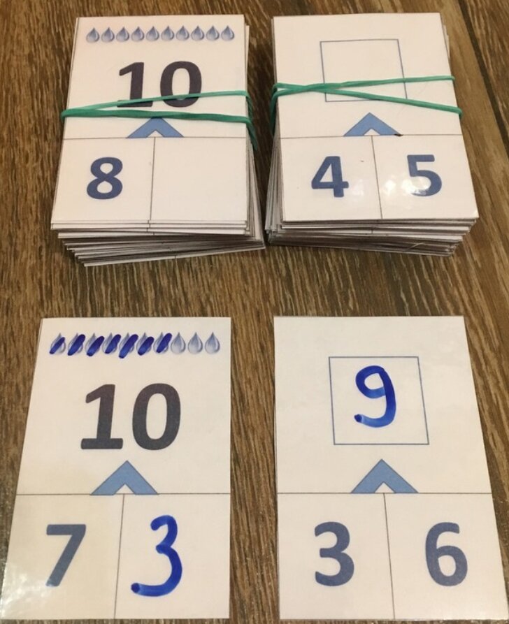 Учим состав числа. Изучаем легко состав числа! Все в игре воспринимается детьми гораздо быстрее и проще! Для этого используем карточки с составом числа. При правильном ответе ребенок забирает карточку себе, иначе-он должен будет повторить ее. И так до тех пор пока не усалит материал.