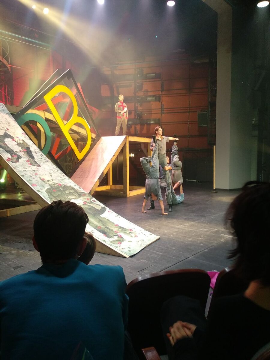 Я продолжаю исследовать репертуар театра Романа Виктюка, и на этот раз это спектакль «Венецианка» в постановке Игоря Неведрова. Это уже второй спектакль, режиссера Игоря Неведрова, который я посмотрела. Для себя отметила, что спектакли Игоря Неведрова всегда наполнены аллегориями и настоящим взрывом эмоций. Комедию неизвестного итальянского автора XVI века выбрал сам Роман Виктюк, и его незримая рука чувствуется в постановке. Яркие, и невероятно красивые декорации (з.х. РФ: Боер Владимир) две огромные буквы РВ «Революция, вперед! Москва! » - значение которых, нам поясняют актеры во время спектакля. Но для меня эти буквы не что иное, как инициалы Мастера. Горки, лестницы, турники, вращающийся механизм (звезда), которая с каждым своим вращением словно обнажает механику театра. Вообще вся декорация, по которой актеры лихо перемещаются весь спектакль, напоминает макет установки для трагического фарса Кроммелинка «Великодушный рогоносец» в Театре имени Мейерхольда в Москве «станок для игры