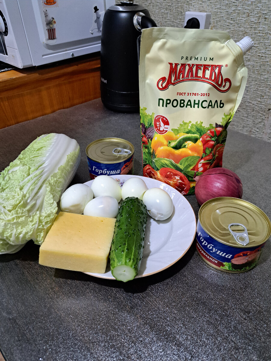 Очень простой, но интересный салатик. Ингредиенты: Приготовление: С консервы жидкость сливаем, рыбу разбираем на небольшие кусочки, удалив крупные кости. Яйца отварить, порезать кубиком. Огурец порезать кубиками. Лук (у меня красный) - порезать мелко. Если берете обычный репчатый лук, то его нужно ошпарить кипятком. Капусту нашинковать и немного помять. Сыр натереть на терке (но можно и нарезать мелким кубиком) Все ингредиенты высыпать в салатник. Добавляем соль, перец по вкусу, перемешиваем и заправляем майонезом. Вкусный, свежий и нежный салат готов. Приятного аппетита!
