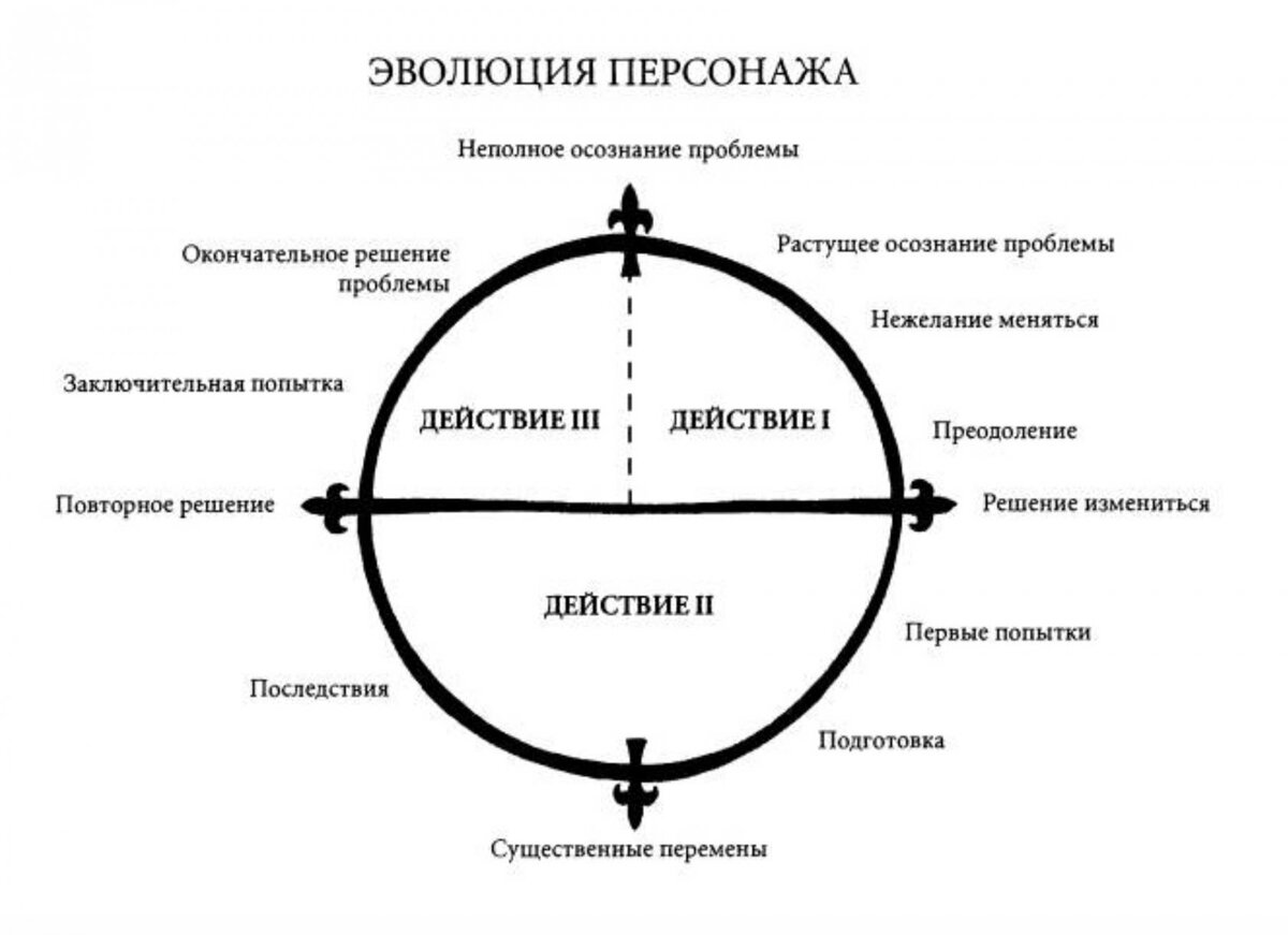 Если персонаж не изменился к концу фильма, значит, его история ничему не учит. Начальный путь персонажа до финала - это арка персонажа, его внутренняя эволюция, которая меняет его отношение к жизни или в более масштабном смысле судьбу. Термин «эволюция» означает изменения, происходящие с персонажем на протяжении всего произведения. И на это работают события и обстоятельства, в которых оказывается герой. Двумя самыми яркими примерами эволюции можно назвать главных героев из фильма «Фарго» и сериала «Во все тяжкие». Если соотнести с примером литературной арки, то вот как бы выглядела арка Родиона Раскольникова из «Преступления и наказания». Изменения героя не должно происходит мгновенно и радикально. Каждое мелкое событие влияет на его поступки, привычки и поведенческую систему. И в конце конов, эта трансформация должна, как правило, чему-то учить. Например, парень начал зарабатывать и деньги его испортили. Или герой был плохим, а к концу стал хорошим, потому что ряд обстоятельств застав