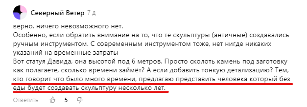 Напоследок поделюсь примером скульптора, который и сегодня работает с мрамором старыми методами, без применения электроинструментов.