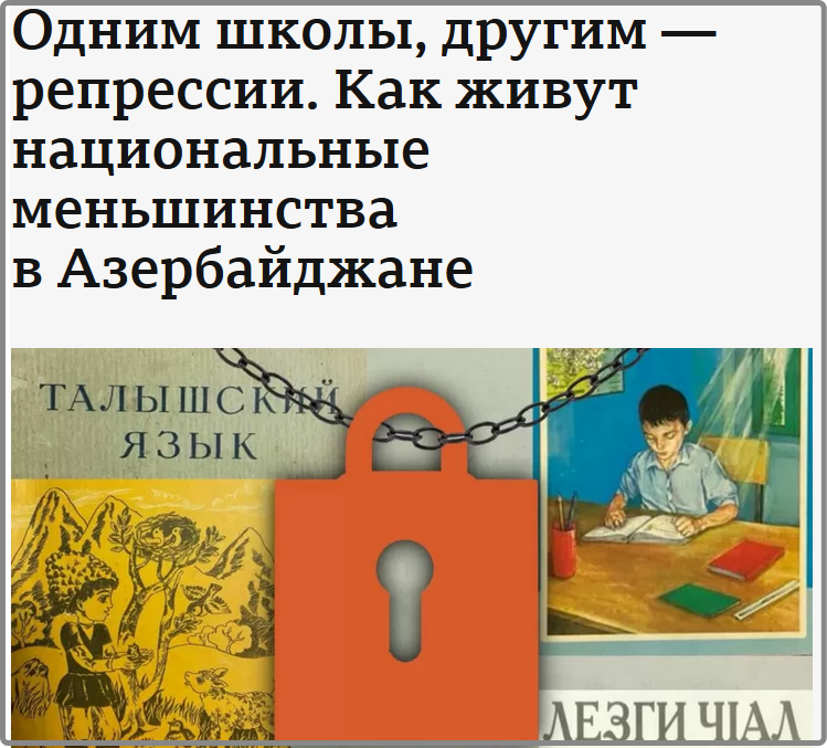 Очередной пасквиль ВВС, посвящен нацменьшинствам Азербайджана. Недовольству, что русских школ в стране много, а другие народы "ущемлены"