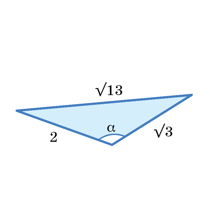 Задача: Стороны треугольника равны 2, √3 и √13. Найдите больший угол и площадь этого треугольника.