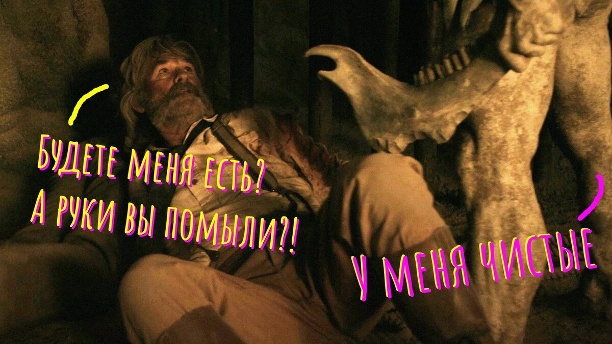 Жена смотрит на них, как на идиотов. Жена говорит им, что они идиоты. Шериф и Чикори смотрят друг на друга прям новыми глазами. Жена всхлипывает, явно более расстроенная не тем, что её скоро съедят, а что съедят её в такой незавидной компании.