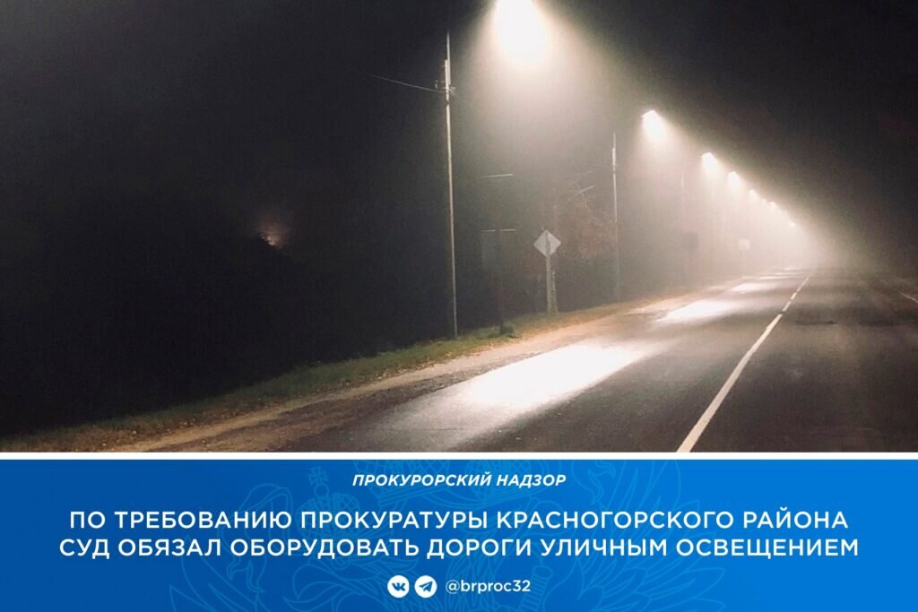 Прокуратура Красногорского района по жалобам местных жителей проверила исполнение законодательства о безопасности дорожного движения. Об этом сообщает пресс-служба надзорного ведомства Брянской области. Установлено, что администрация не обустроила стационарное освещение на улицах Профсоюзной, 8 Марта и Спортивной в поселке Красная Гора. Аналогичная ситуация сложилась в населенных пунктах Селец и Любовшо. В связи с этим главе райадминистрации внесли представление. Однако нарушения не устранили. Пришлось обратиться в суд с требованием организовать освещение дорог. Все иски рассмотрены и удовлетворены. Суд обязал администрацию Красногорского района осветить дороги