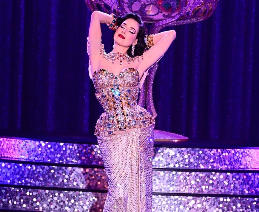 Дита фон Тиз — бесспорная современная королева бурлеска - дебютировала в своей новом шоу в прошлый четверг. 75-минутное шоу, поставленное в знаменитом театре Jubilee в Лас-Вегасе Horseshoe, является данью уважения одному из самых известных ревю-шоу Вегаса и последней постановке showgirl, которая шла с 1981 по 2016 год. Я была большой поклонницей the Jubilee! Раньше постоянно приходил сюда, когда приезжала в Вегас. Мне нравилась экстравагантность и роскошь — перья и стразы. Бюджет одного костюма около 12 миллионам долларов! Фон Тиз использует в своей постановке несколько оригинальных костюмов и декораций. Среди таких костюмов - работы Боба Макки и Пита Менефи. Они просто были заперты внизу [в Jubilee Theater], и я подумала: ”Могу я ими воспользоваться? Я подумала, что было прекрасно снова показать их. Фон Тиз добавила в костюмы новые детали, расшитые кристаллами Swarovski. Я не вписываюсь в архетип танцовщицы. Есть много параметров, которые были присущи танцовщице на протяжении десят
