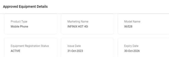Смартфон Infinix Hot 40i прошёл сертификацию органом TDRA ОАЭ