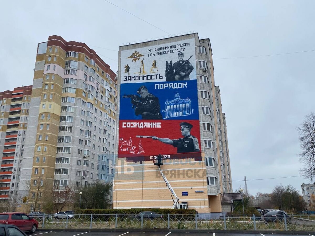 Ранее мы рассказывали, что напротив нового здания УМВД в Брянске, которое уже вот-вот будет открыто официально, создают яркий мурал. Ранее на здании появился только флаг Российской Федерации.
