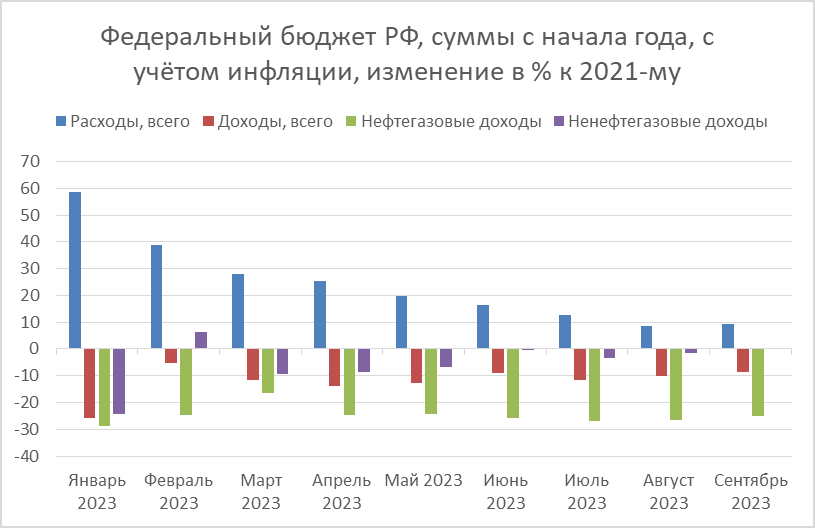 Компоненты федерального бюджета по отношению к 2021-му с учётом инфляции
