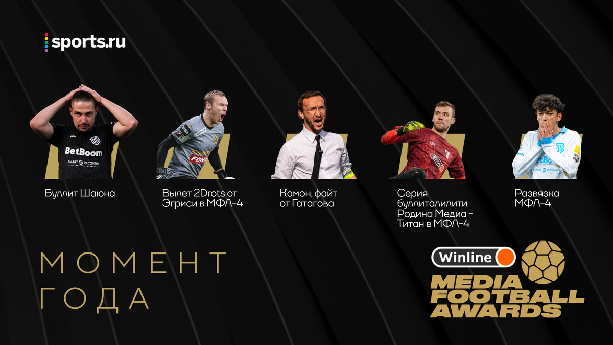 Winline Медиалига и Sports.ru продолжают публиковать номинантов на индивидуальные награды по итогам года. Следующая номинация – момент года в медиафутболе. На приз претендуют: буллит Сергея Шаюнова, вылет 2Drots от «Эгриси», фраза Алана Гатагова, серия буллиталити «Родина Медиа» – «Титан», последние минуты финала Winline МФЛ-4. Голосование стартовало 1 ноября и продлится до 12 ноября. 22 ноября пройдет церемония вручения премии. В голосовании примут участие команды, представители медиа и болельщики. Если опрос не отображается – переходите по ссылке Голосуй за лучшее медиафутбольное медиа года Подробная информация о голосовании и о других номинациях