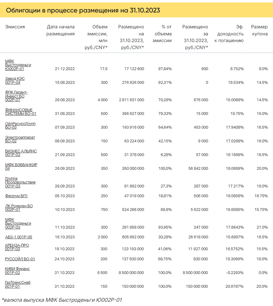 Итоги торгов на рынке ВДО за 31.10.2023