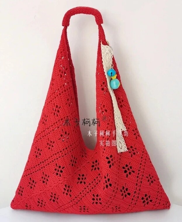 Сумка вяжется одним прямоугольным полотном, затем складывается конвертом, сшивается и в конце вяжутся ручки. Вяжется простое прямоугольное полотно: Начинаем складывать 1.Заворачиваем углы: 2. Сворачиваем ещё раз по диагонали, образовывая два острых угла, к которым затем будем привязывать ручку. Вяжем ручку к сумке столбиками без накида Схема узора основного полотна сумки. Довольно распространённый узор Готовый результат. Обратите внимание на то, что ручка укреплена дополнительно. А можно связать ручку в виде длинного шнура, завязывая который можно регулировать длину ручки. Всем добра и мира!
